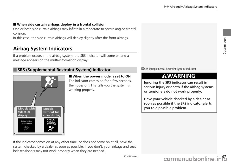 If a problem occurs in the airbag system , the SRS indicator will come on and a