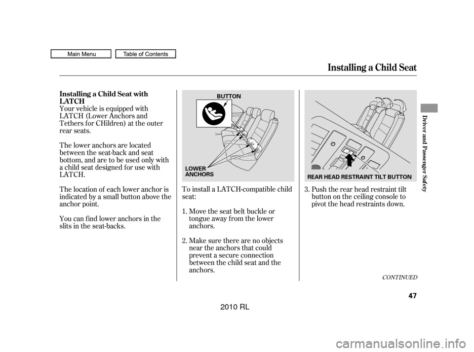 Acura RL 2010 Service Manual Af ter selecting a proper child seat