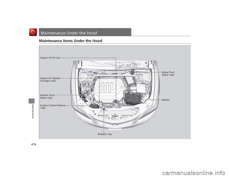 Maintenance Items Under the Hood ..... 418Opening the Hood ........................... 419