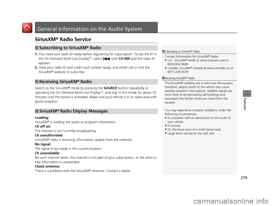 17 ACURA RLX E-AWD-31TY36300.book 279 ページ 2016年6月17日 金曜日 午前8時 29分