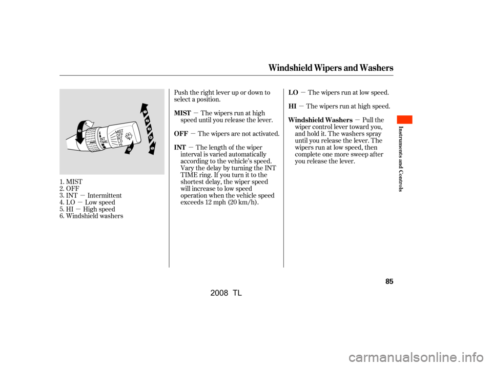 wipers Acura TL 2008 Owner's Manual