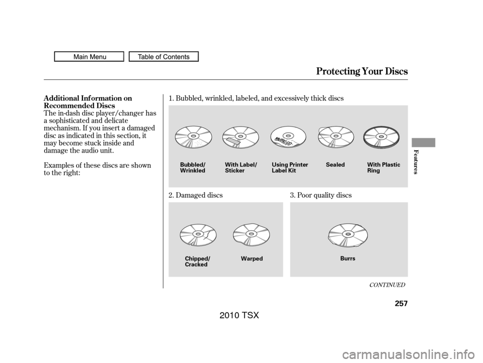 Acura TSX 2010  Owners Manual The in-dash disc player/changer has