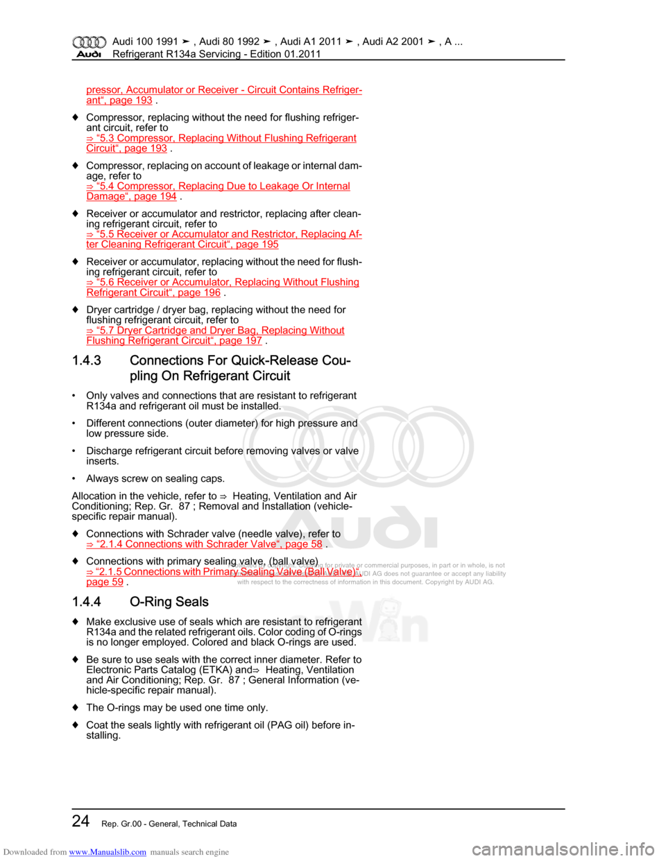 AUDI 100 1991 44 Refrigerant R134a Servising Owner's Manual