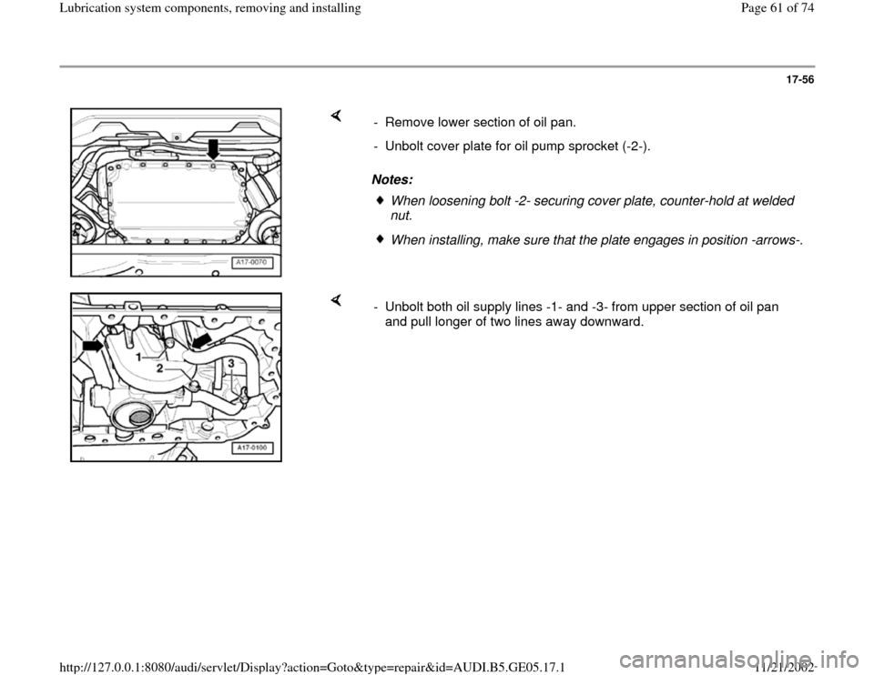 AUDI A4 2000 B5 / 1.G APB Engine Lubrication System Components Repair Manual