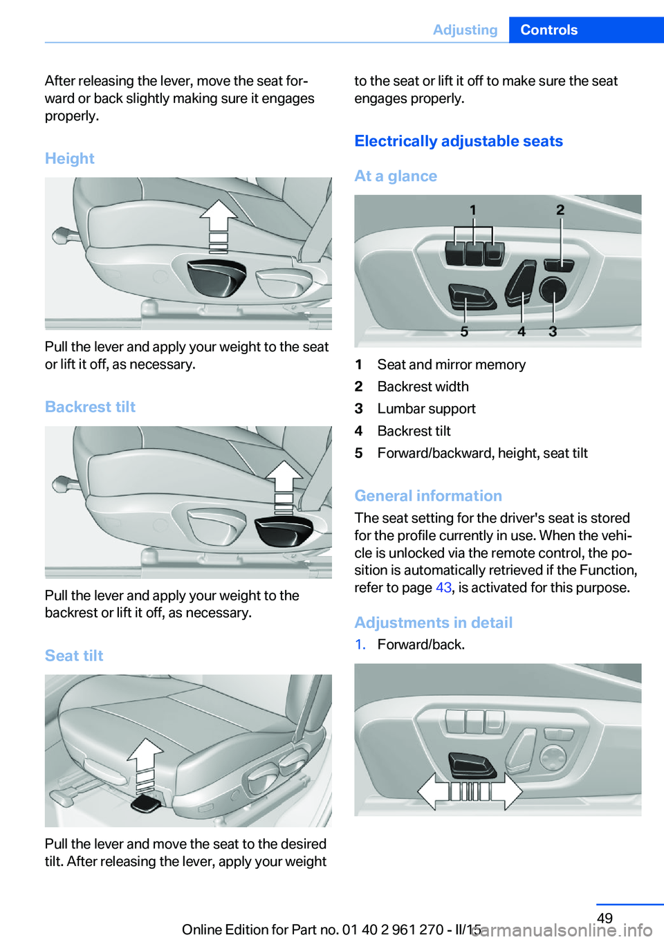 1.Forward/back.Seite 49AdjustingControls49