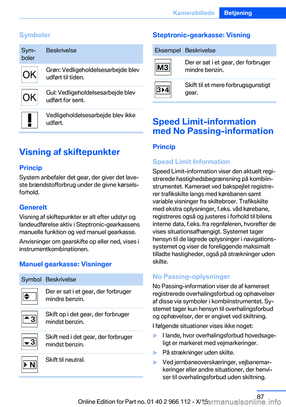 ser til overhalingsforbud uden skiltning.Seite 87KamerabilledeBetjening87