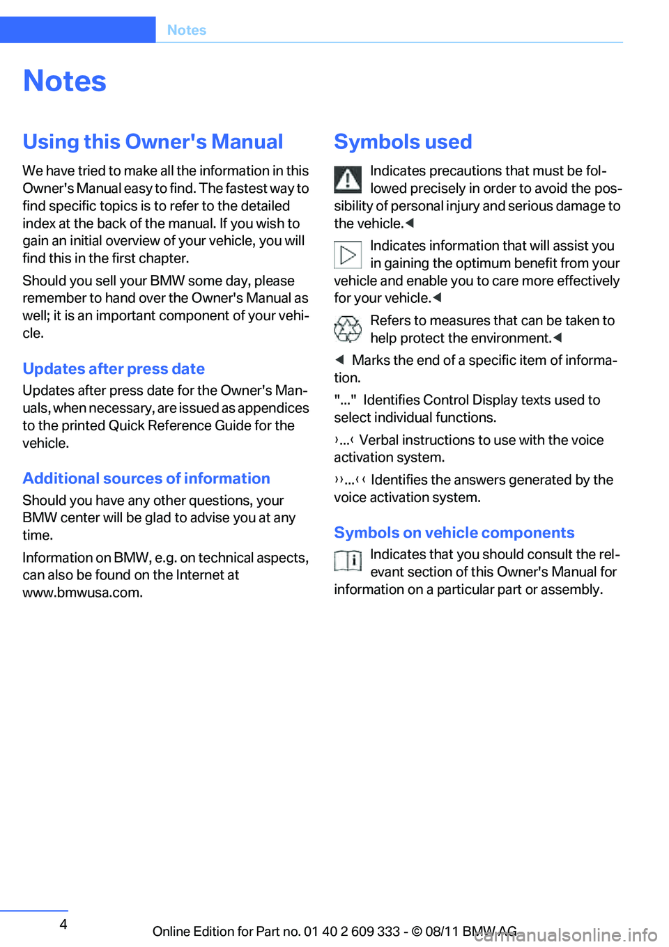 Online Edition for Part no. 01 40 2 609 333 - \251 08/11 BMW AG