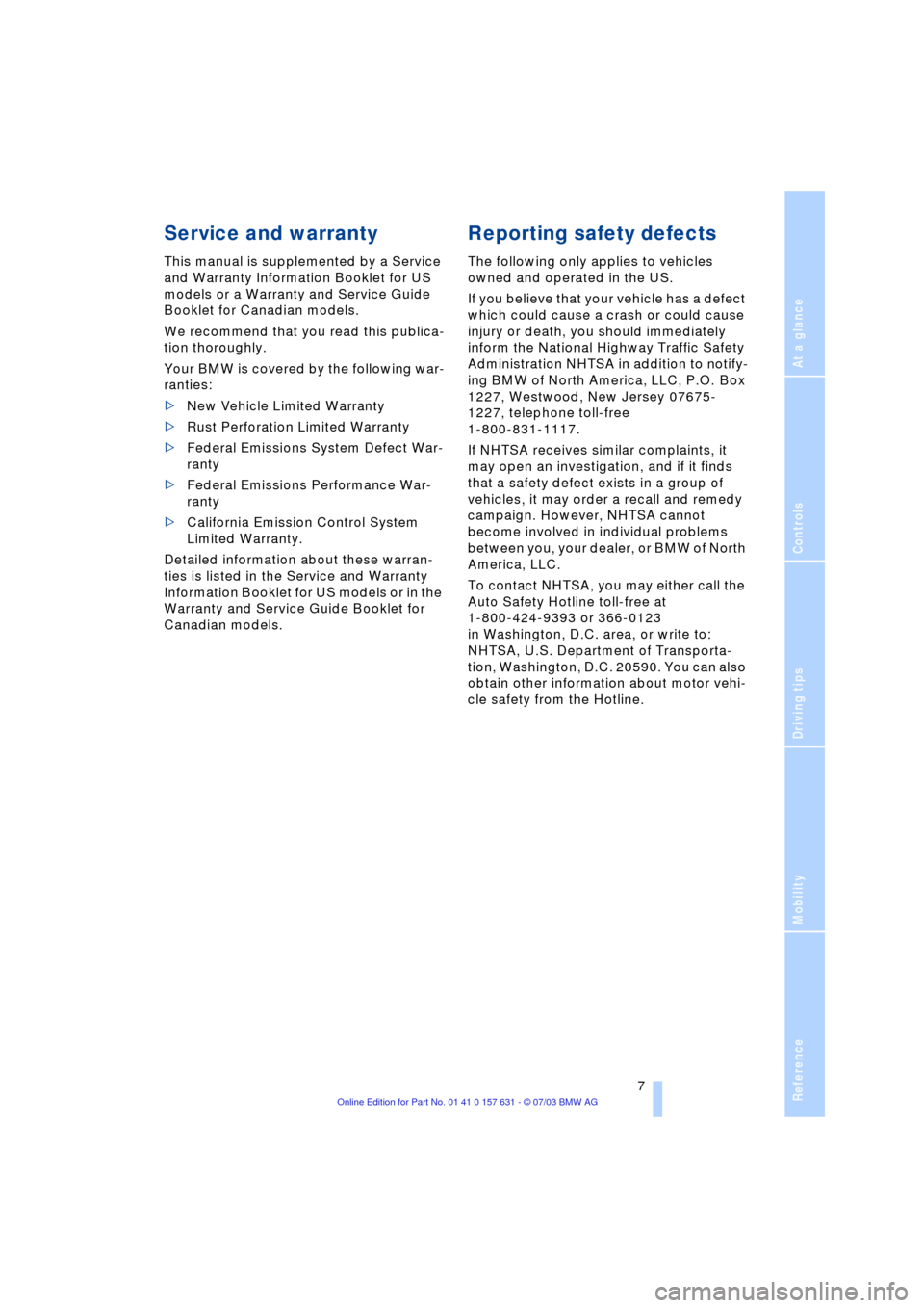 Limited Warranty. See your BMW Sports