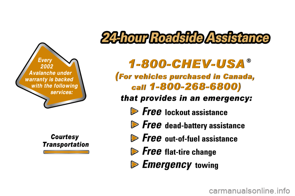 CHEVROLET AVALANCHE 2002 1.G Owners Manual