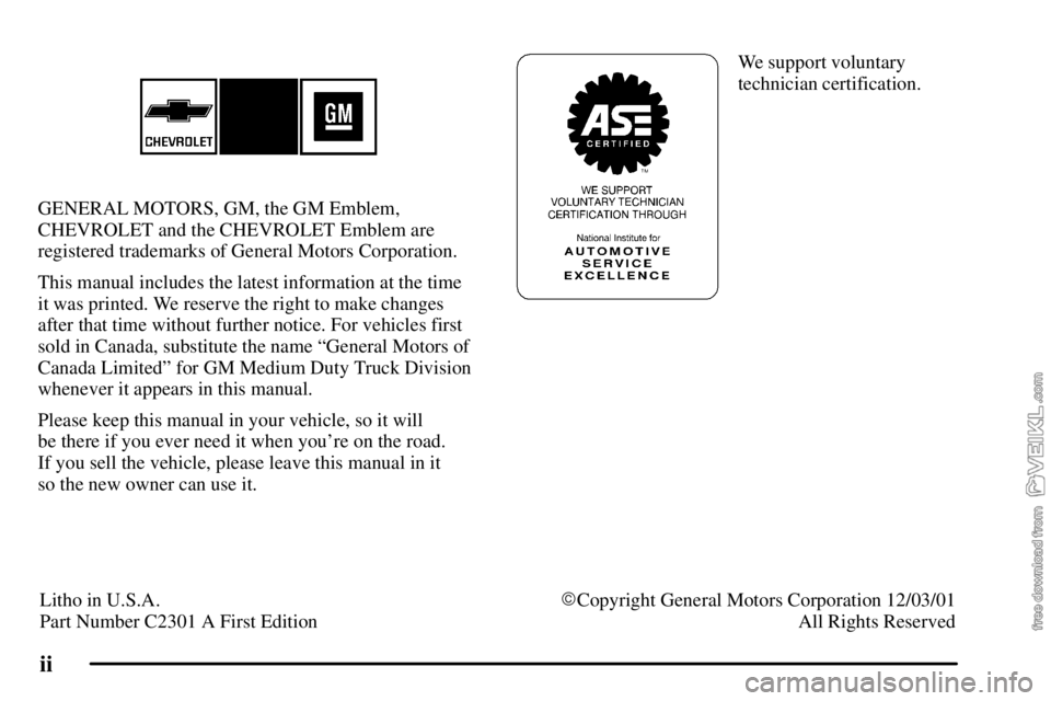 Litho in U.S.A.Copyright General Motors Corporation 12/03/01