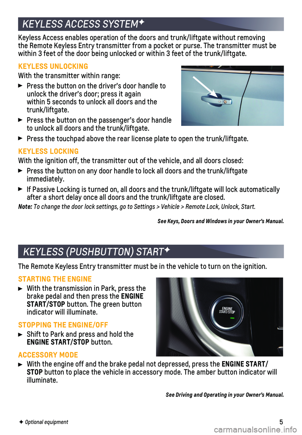 Keyless Access enables operation of the doors and trunk/liftgate without\