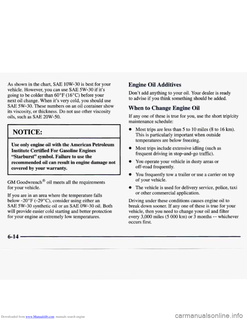 Downloaded from www.Manualslib.com manuals search engine As shown in the chart, SAE 1OW-30 is best for your