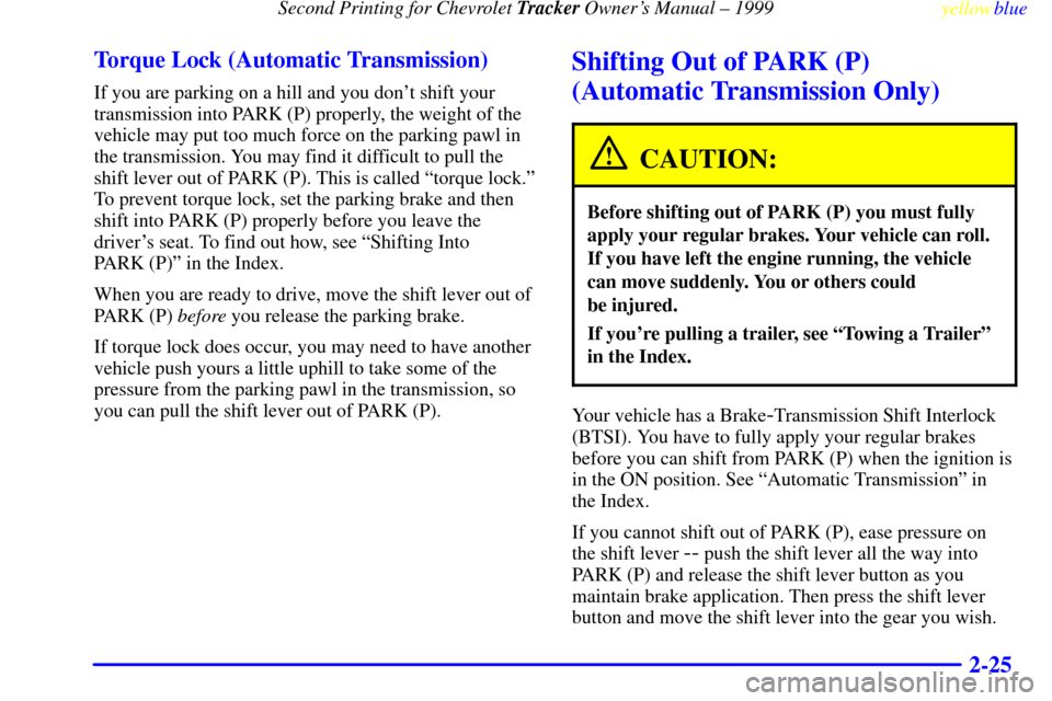 automatic transmission CHEVROLET TRACKER 1999 2.G Owners Manual