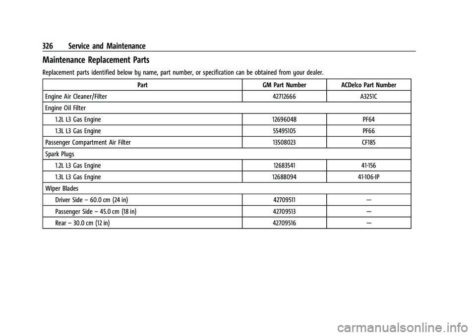 Replacement parts identified below by name, part number, or specification can be obtained from your dealer.Part GM Part NumberACDelco Part Number