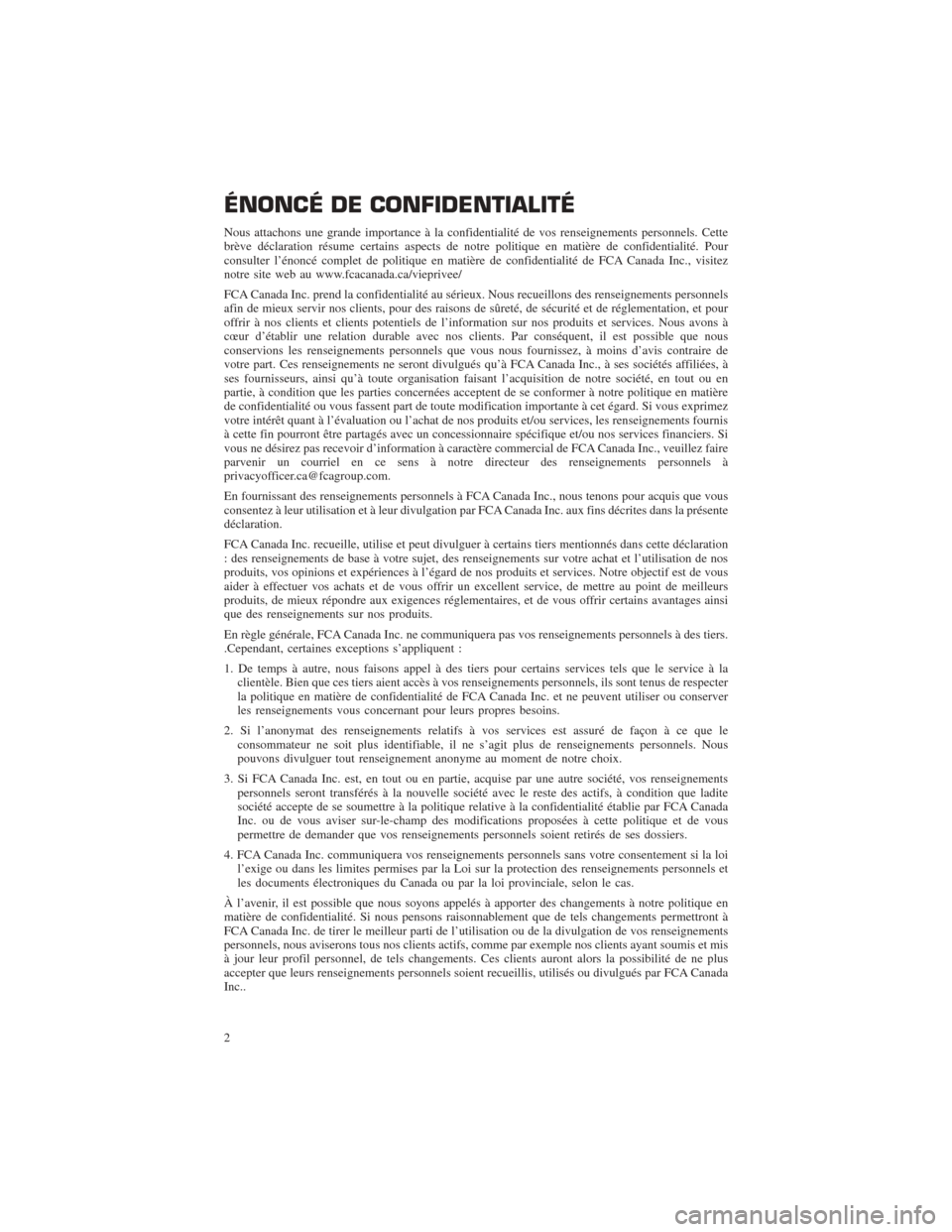 vous ne désirez pas recevoir d’information à caractère commercial de FCA Canada Inc., veuillez faire
