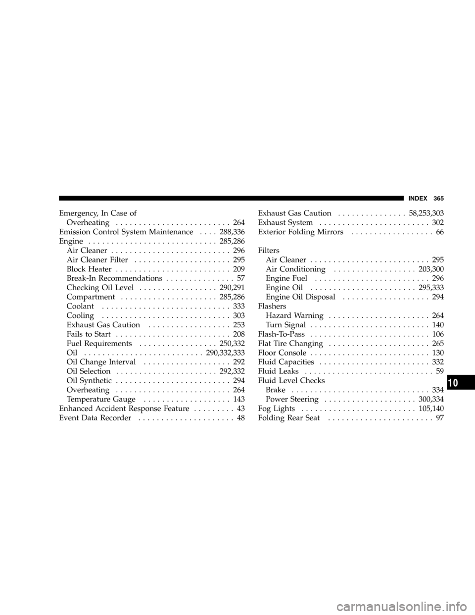 Engine Oil Disposal................... 294