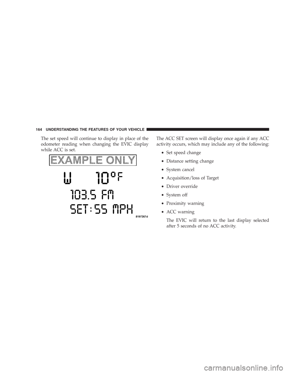 displays in the EVIC:ACC OFF\25When ACC is deactivated, the display will read “ACC