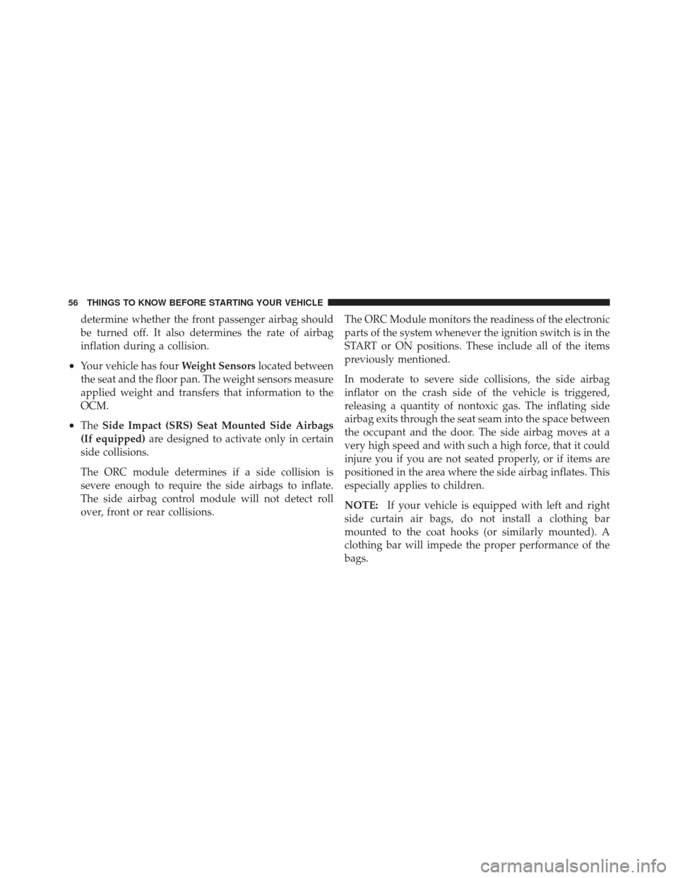 •Front Seat Mounted Side Airbags (If equipped)