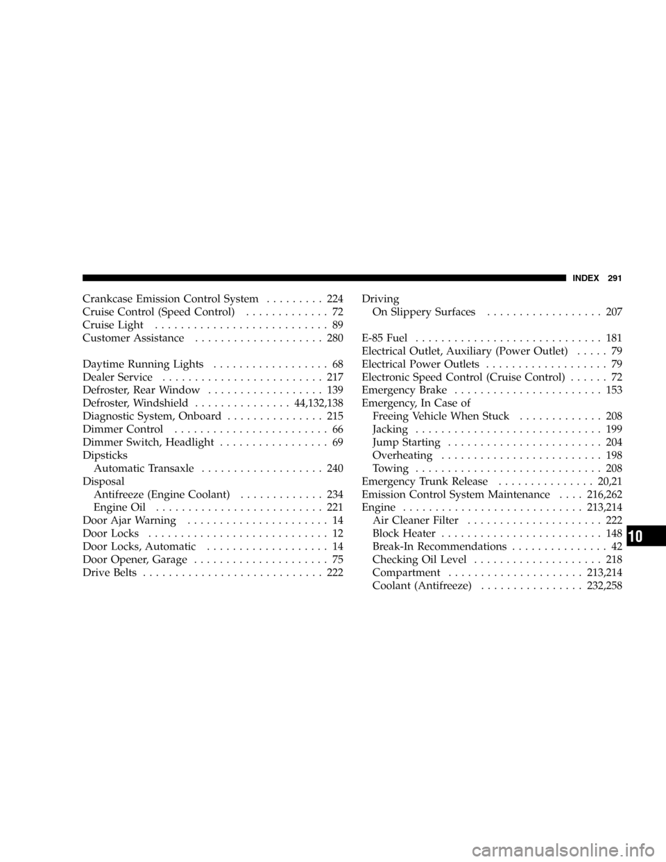 CHRYSLER SEBRING CONVERTIBLE 2006 2.G Owners Manual Crankcase Emission Control System......... 224