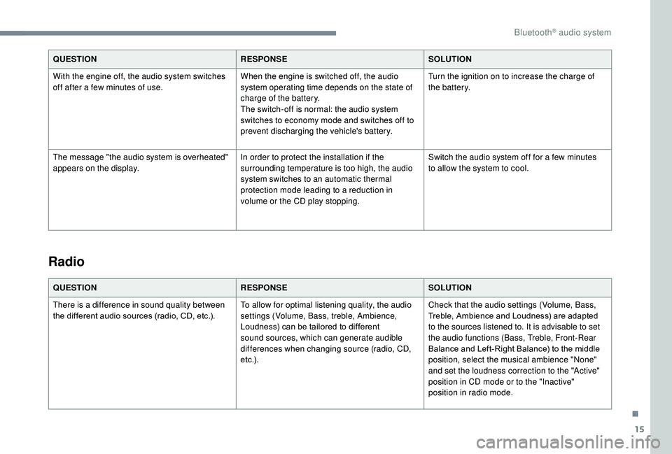 off after a few minutes of use. When the engine is switched off, the audio