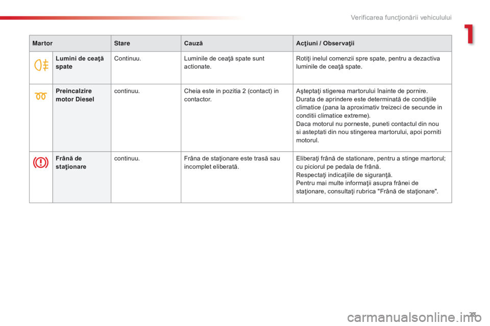 incomplet eliberată. Eliberaţi frână de stationare, pentru a stinge martorul;