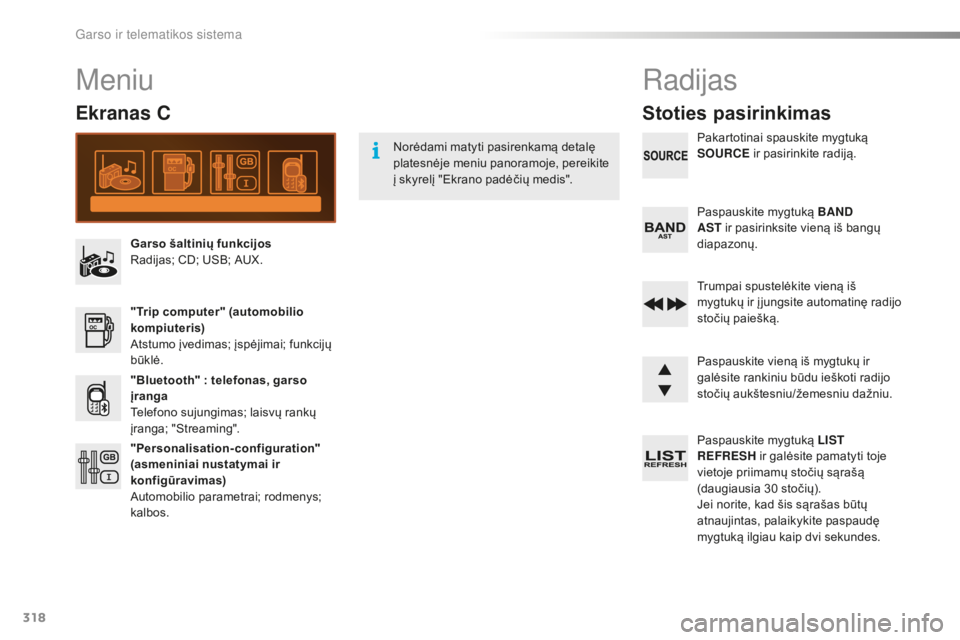 View, print and download for free: trip computer - CITROEN C5 2016 Eksploatavimo vadovas (in Lithuanian), 384 Pages, PDF Size: 19.97 MB. Search in CITROEN C5 2016 Eksploatavimo vadovas (in Lithuanian) online. CarManualsOnline.info is the largest online database of car user manuals. CITROEN C5 2016 Eksploatavimo vadovas (in Lithuanian) PDF Download. 318 C5_lt_Chap11c_RD45_ed01-2015 Meniu Ekranas C Garso šaltinių funkcijos Radijas; CD; USB; AUX. "Trip computer" (automobilio kompiuteris) Atstumo į