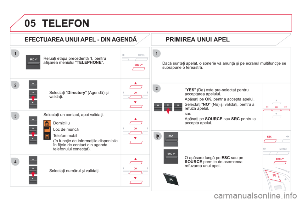 , selectaţi" Telephone" (Telefon) şi validaţi. Selectati "Call" (Apelare) şi validaţi.