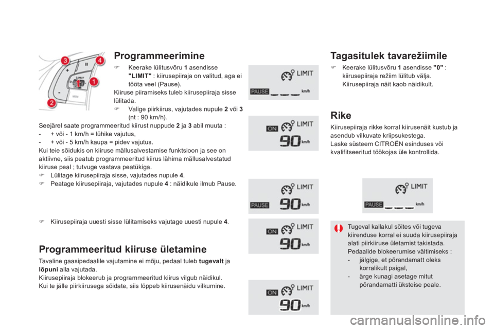 B.Püsikiirusehoidja/kiirusepiiraja info.