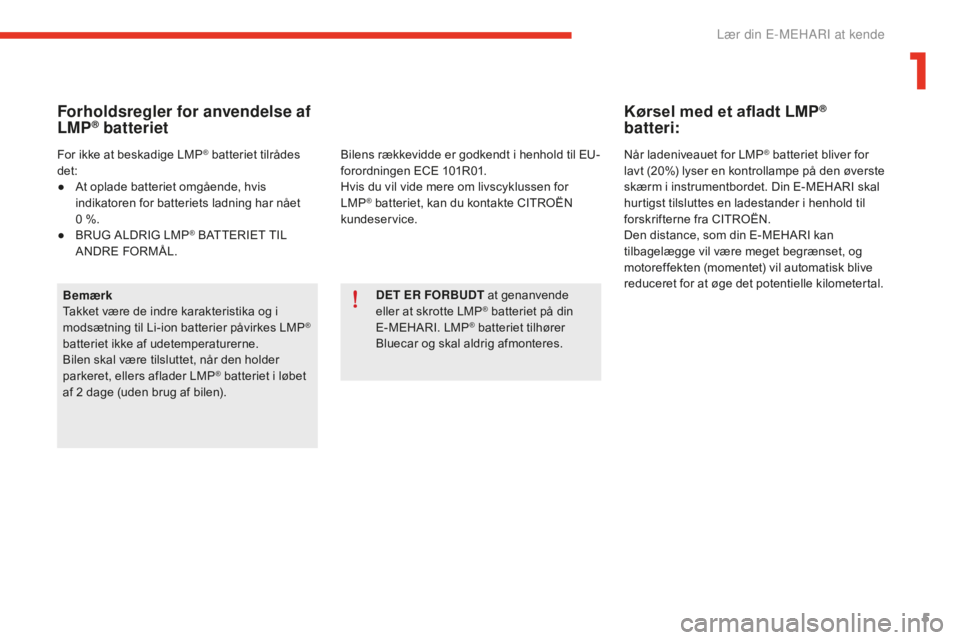 CITROEN E-MEHARI 2016 InstruktionsbØger (in Danish)