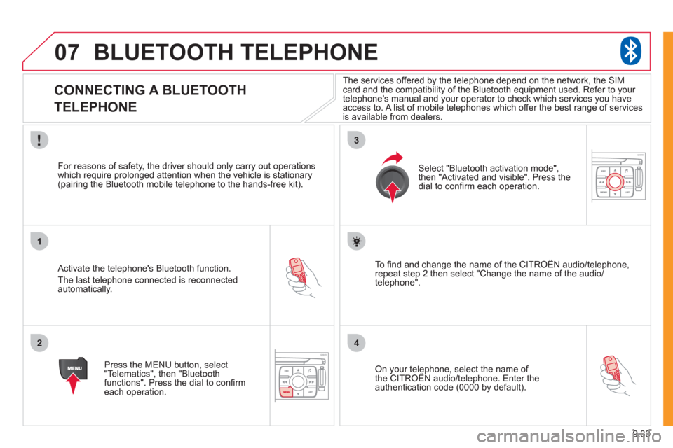"Telematics", then "Bluetoothfunctions". Press the dial to confi rmeach operation.