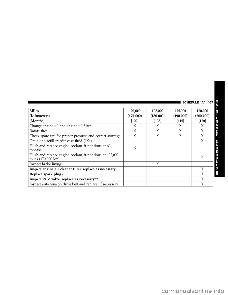 DODGE DAKOTA 2007 3.G Owners Manual Schedule “A”