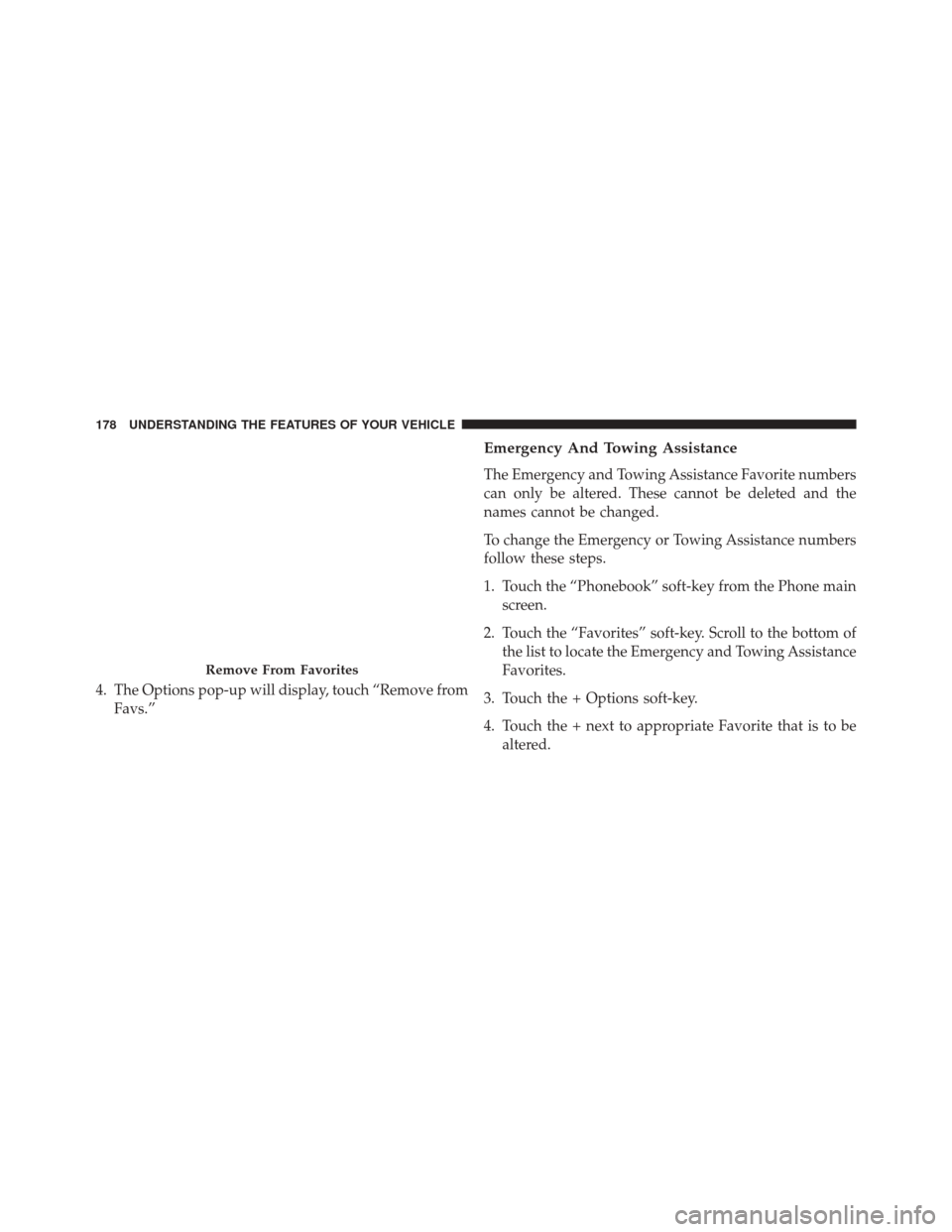 2. Touch the “Favorites” soft-key. Scroll to the bottom of the list to locate the Emergency and Towing Assistance