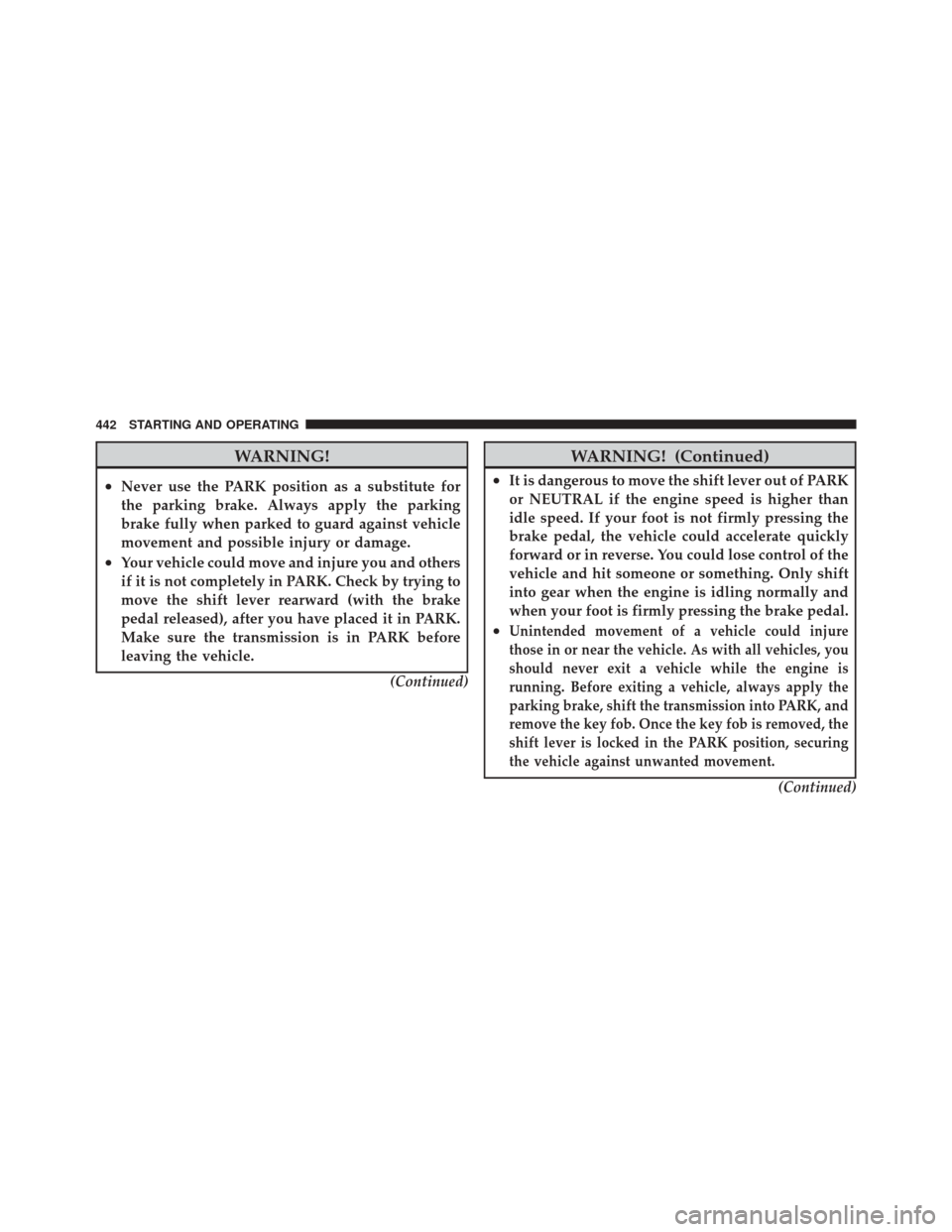 •Never use the PARK position as a substitute for