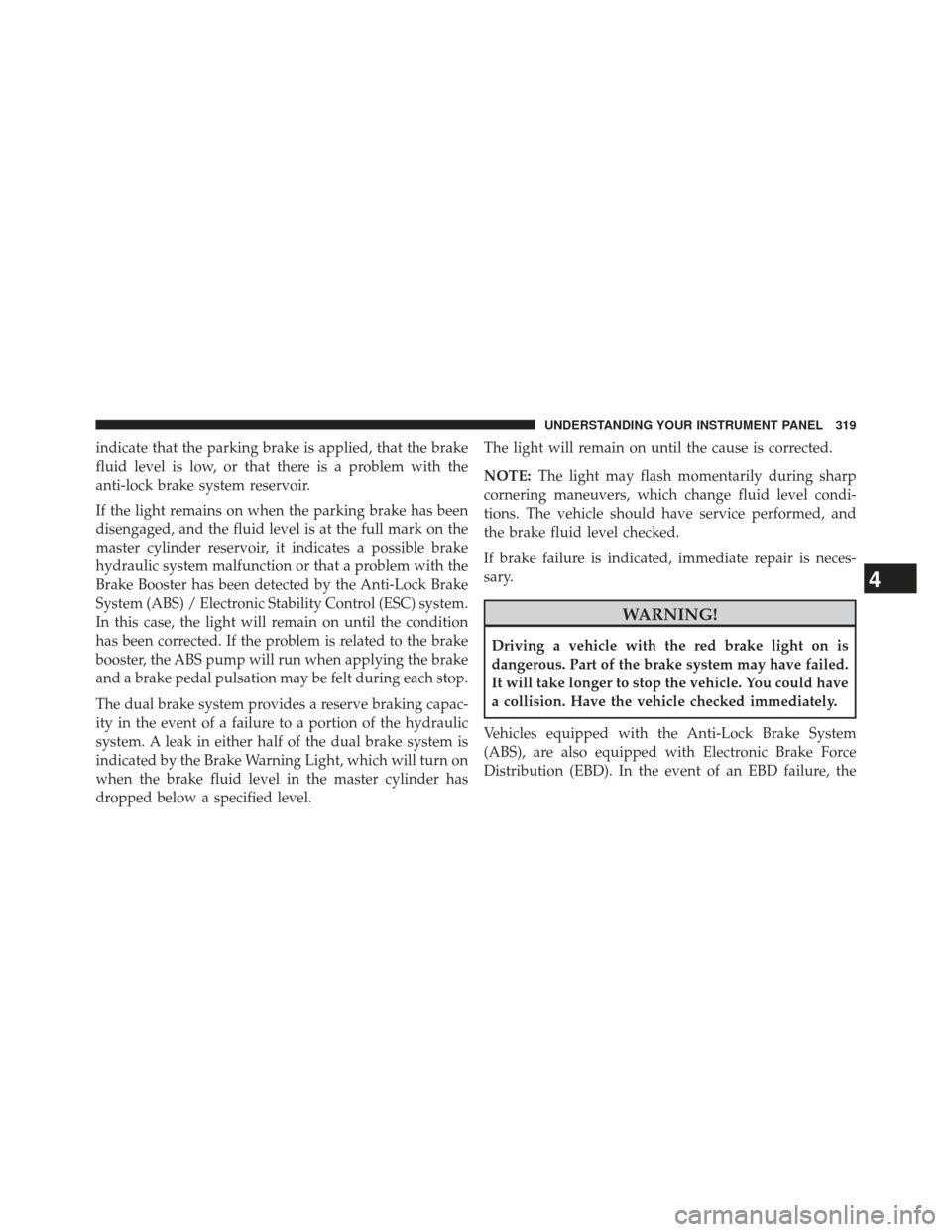 DODGE DURANGO 2013 3.G Owners Manual Brake Warning Light will turn on along with the ABS