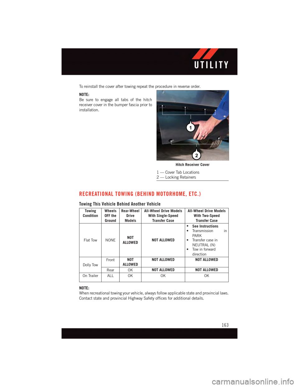 RECREATIONAL TOWING (BEHIND MOTORHOME, ETC.)