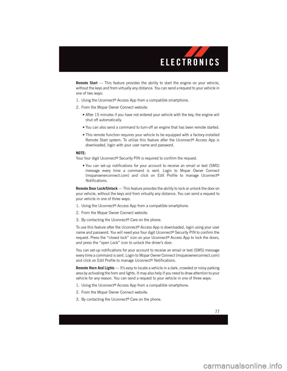 personal Uconnect®Security PIN. The Uconnect®Security PIN will be required to