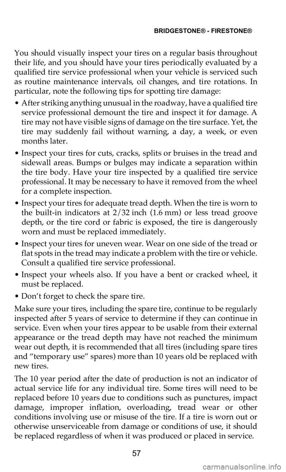 paragraph on “Tread Wear Indicators” in this section. Refer to the Tire