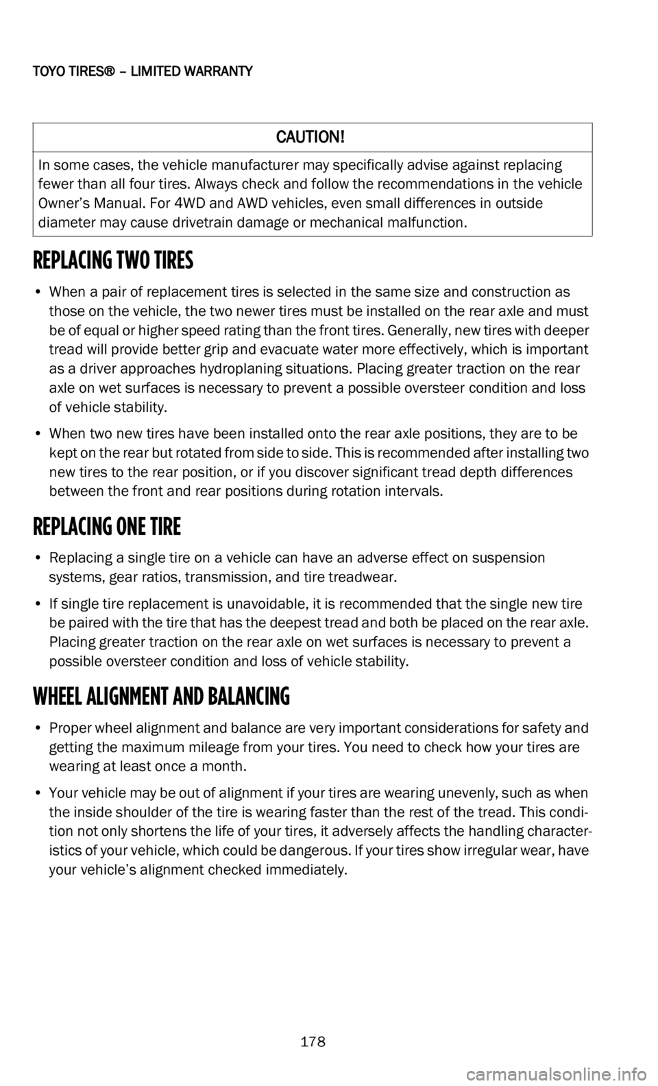 • I f single tire replacement is unavoidable, it is recommended that the single new tire