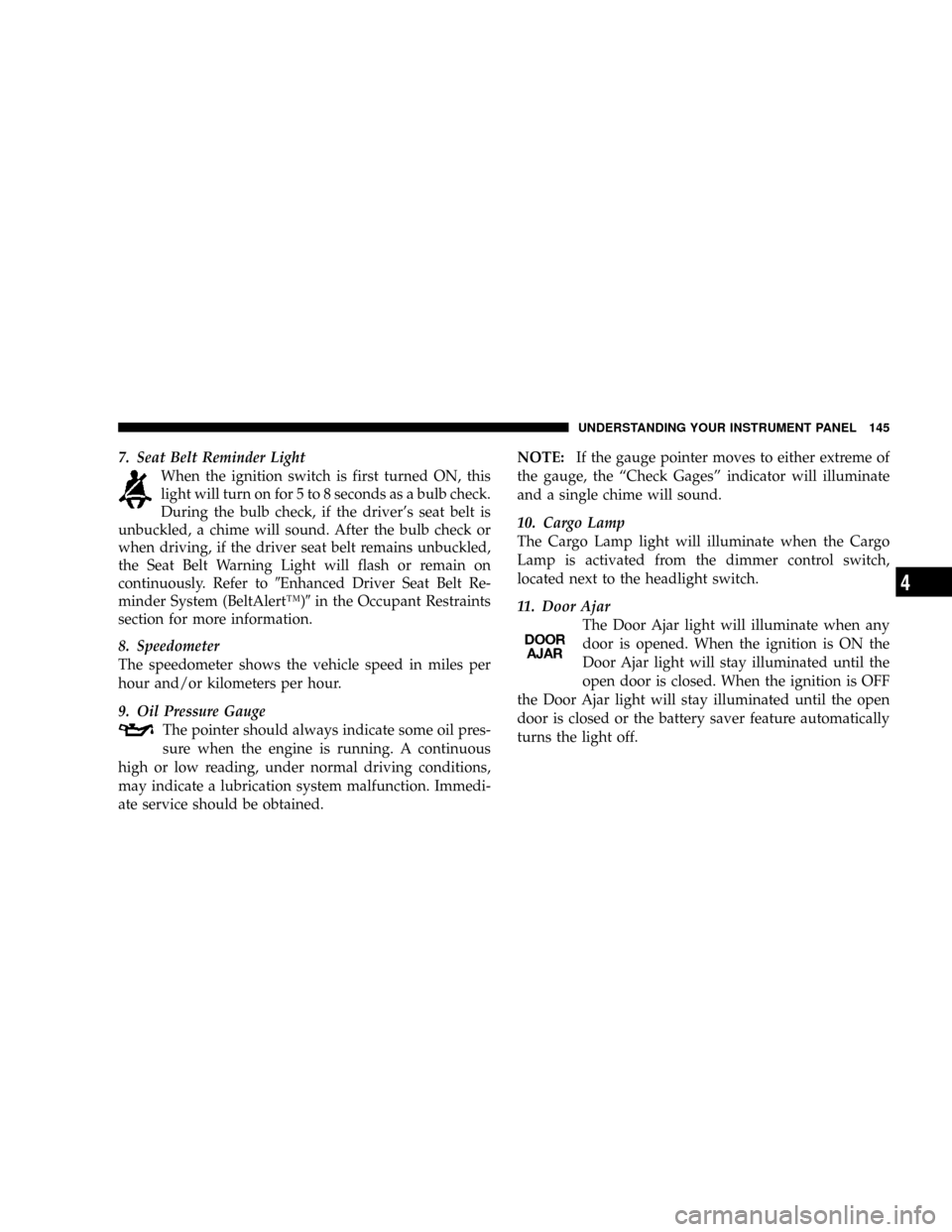 UNDERSTANDING YOUR INSTRUMENT PANEL 145
