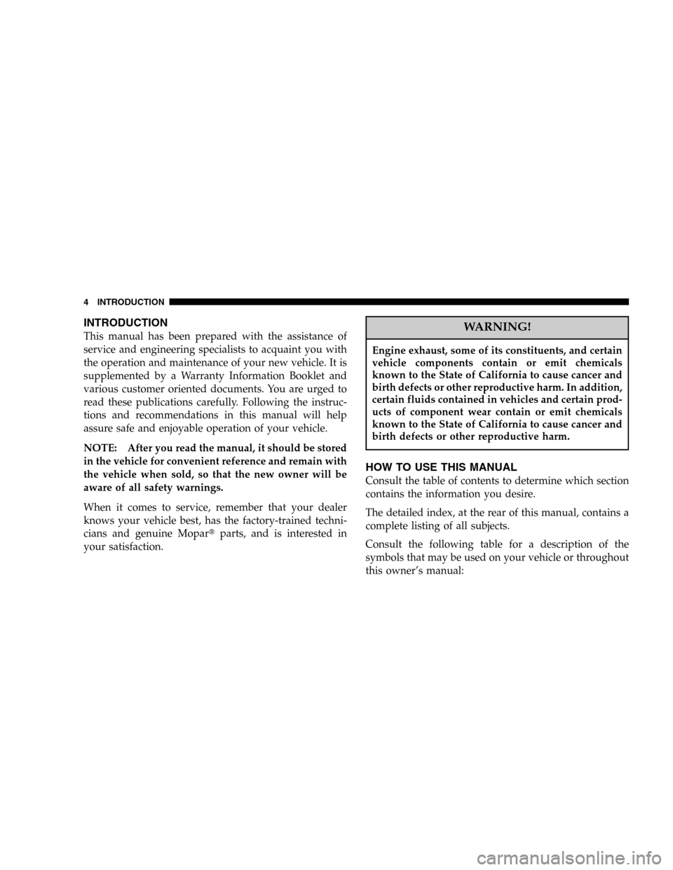DODGE VIPER 2006 ZB / 2.G Owners Manual INTRODUCTION 5