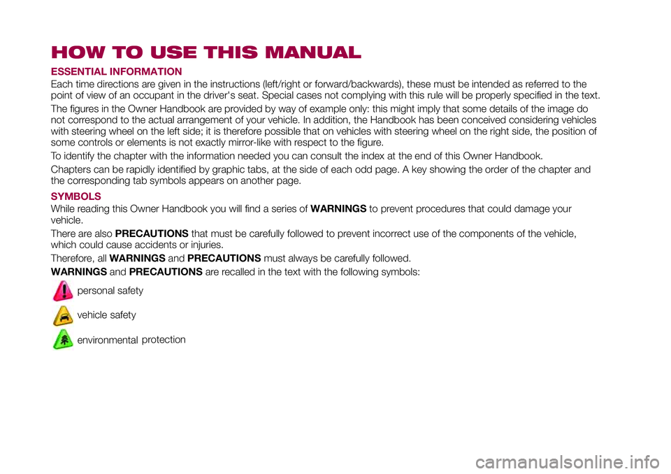 After reading it, you are advised to keep the handbook inside the vehicle, for an easy reference and for making sure it remains