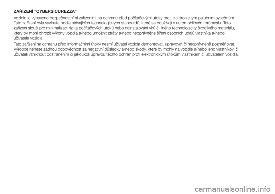 Tato zařízení na ochranu před informačními útoky nesmí uživatel vozidla demontovat, upravovat či neoprávněně pozměňovat.