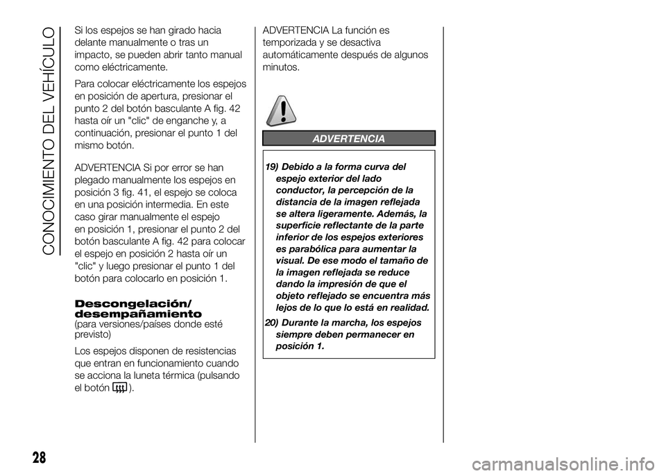 presionar el punto 1 del botón.ADVERTENCIA Si los espejos se han