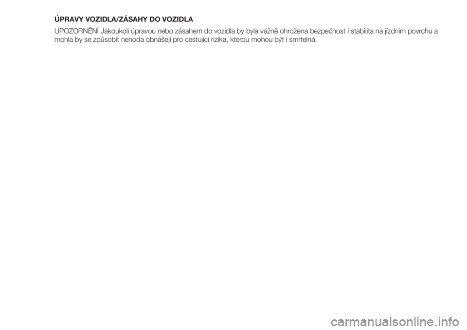 UPOZORNĚNÍ Jakoukoli úpravou nebo zásahem do vozidla by byla vážně ohrožena bezpečnost i stabilita na jízdním povrchu a