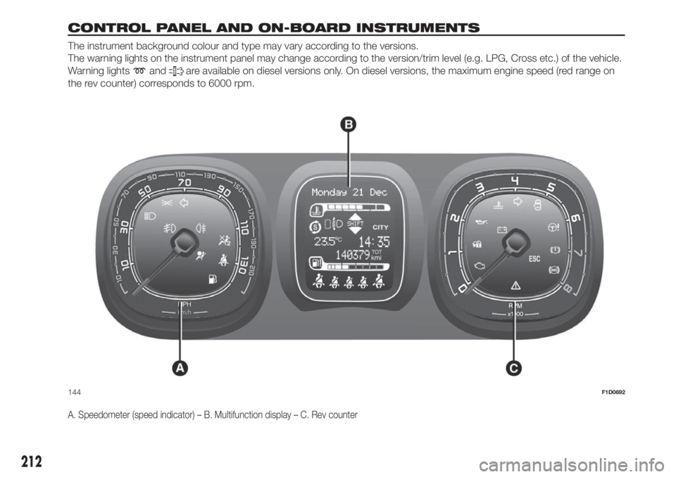 andare available on diesel versions only. On diesel versions, the maximum engine speed (red range on