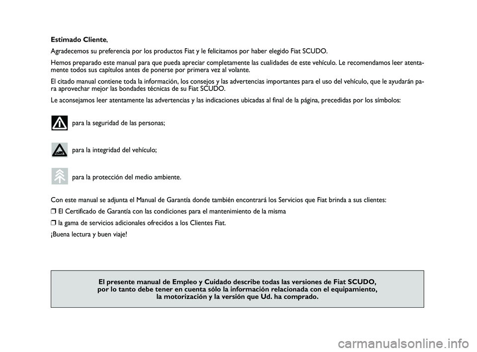 FIAT SCUDO 2013  Manual de Empleo y Cuidado (in Spanish) Estimado Cliente,