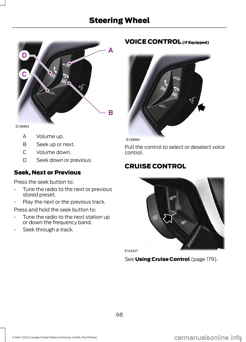 C-MAX (CCG) Canada/United States of America, enUSA, First Printing Steering WheelE130248 E145434