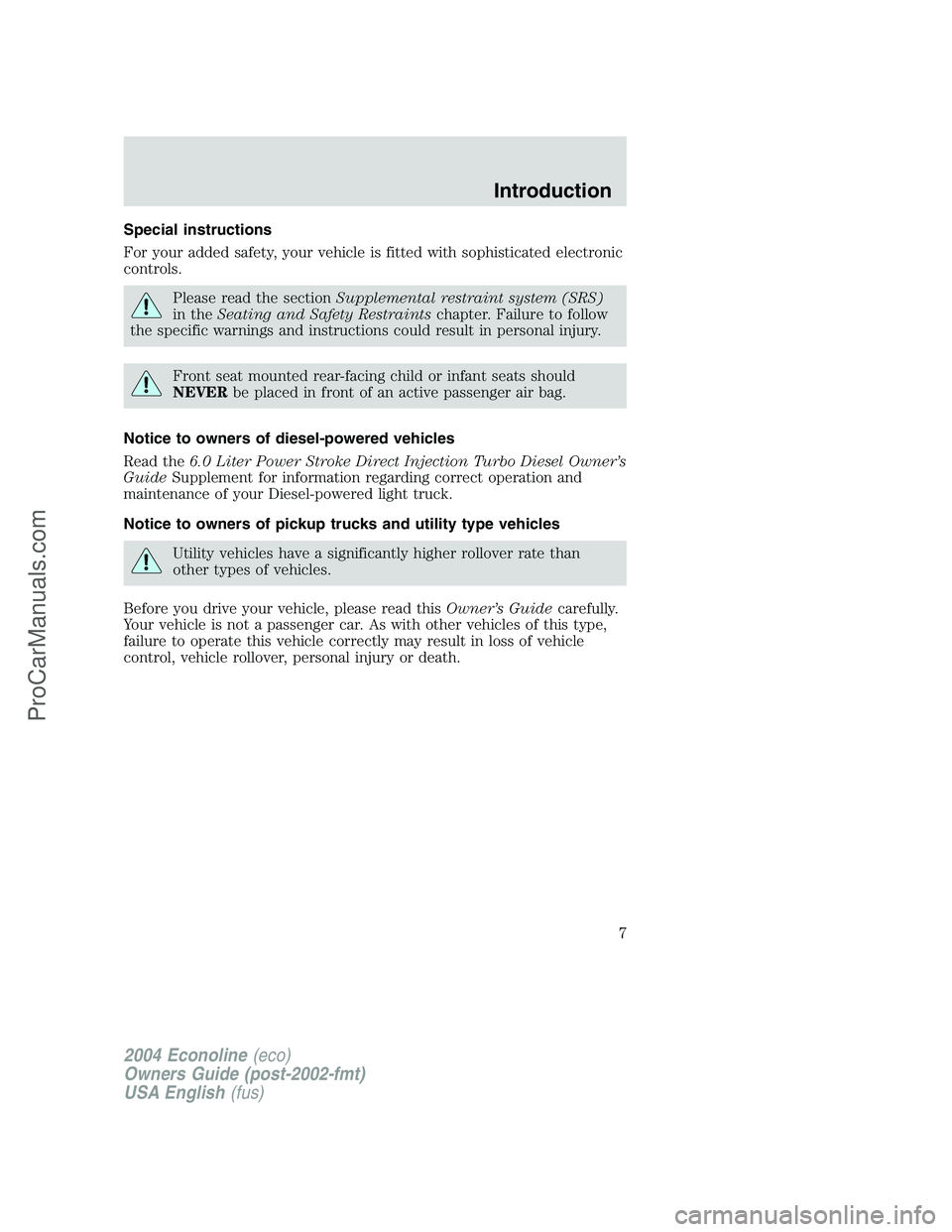 FORD E-350 2004 Owners Manual