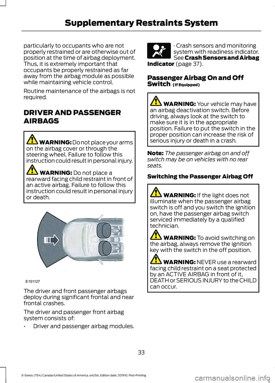 E-Series (TE4) Canada/United States of America, enUSA, Edition date: 201910, First-Printing Supplementary Restraints SystemE142846