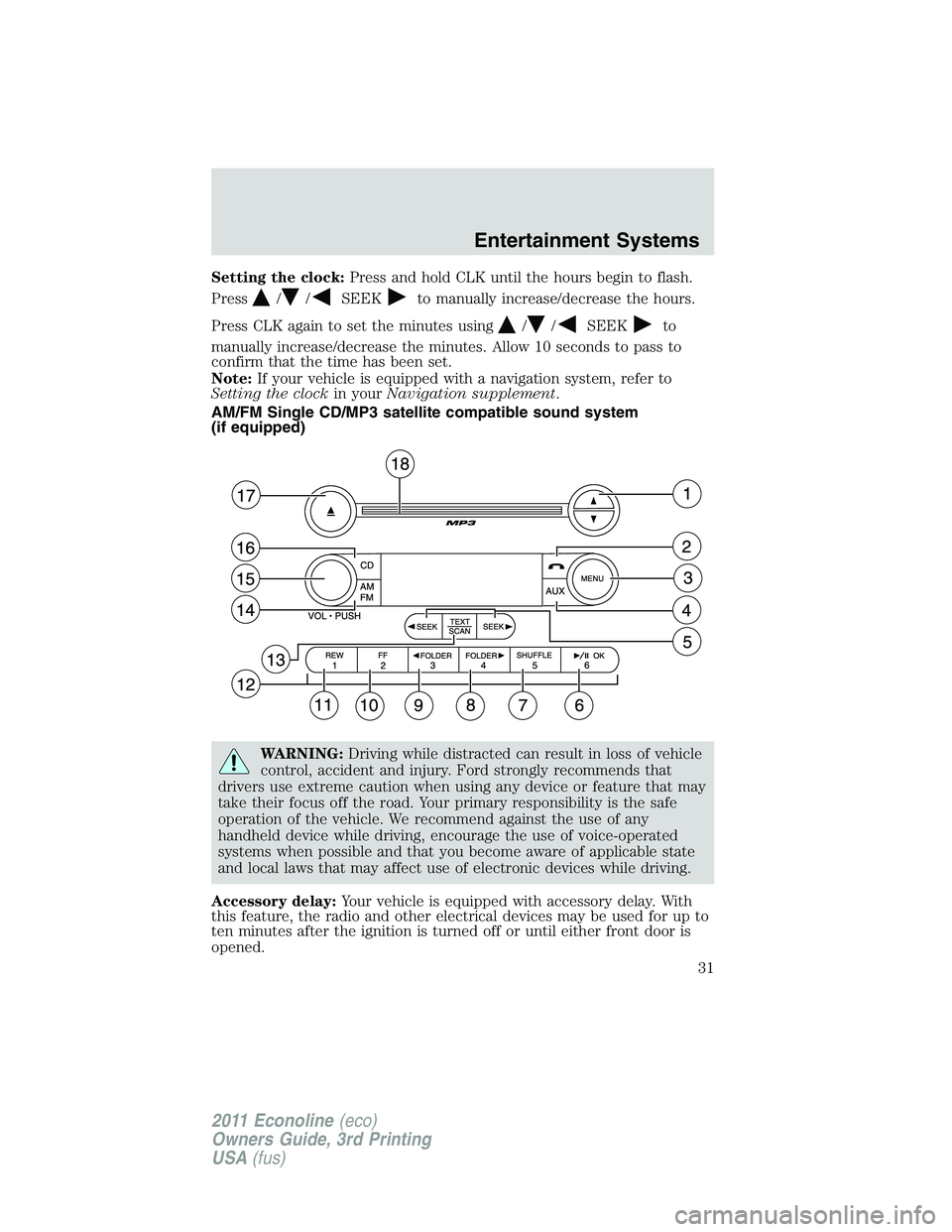 radio FORD E150 2011 Owners Manual